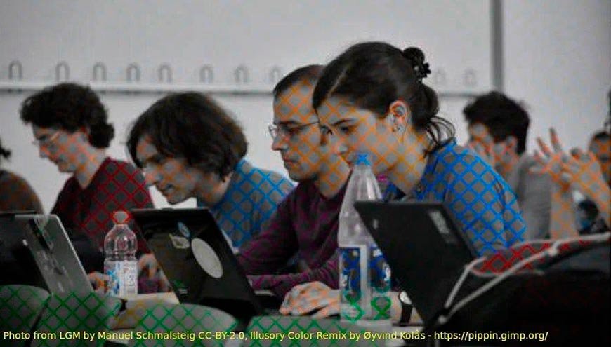 Особенно хорошо это заметно на тонах с небольшим контрастом — девочка в желтой футболке с небольшого расстояния кажется реально одетой в желтое, хотя там вся картинка серая… Этот эффект впервые был описан немецким физиком Вильгельмом фон Бецольдом; в современной литературе его часто называют просто эффектом Бецольда. Ниже я постарался ярко представить этот эффект в виде картинки ДО и После. Это действительно впечатляет.